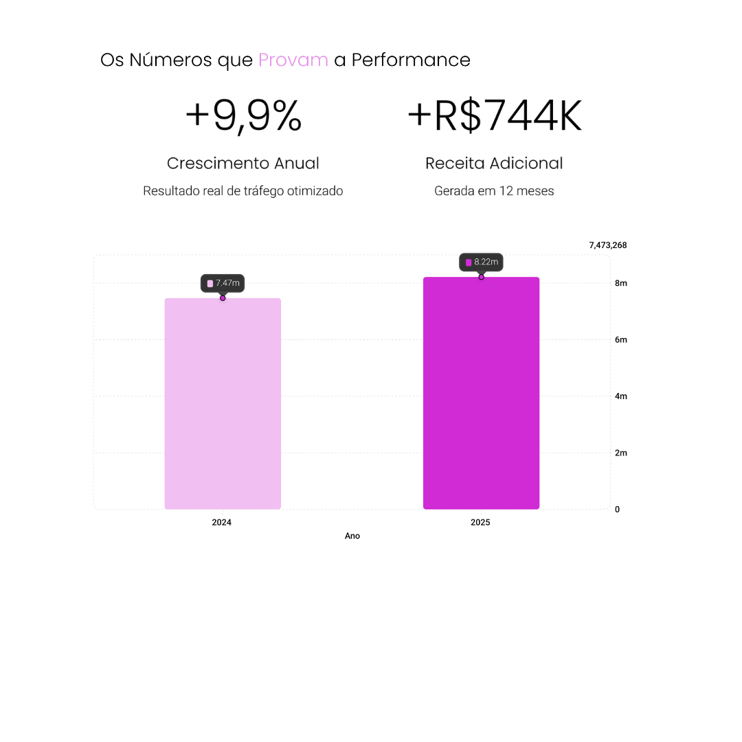 Responsável por gerar R$ 744 mil reais em crescimento de receita em 12 meses, através de estrutura estratégica de tráfego pago e otimização de conversão.